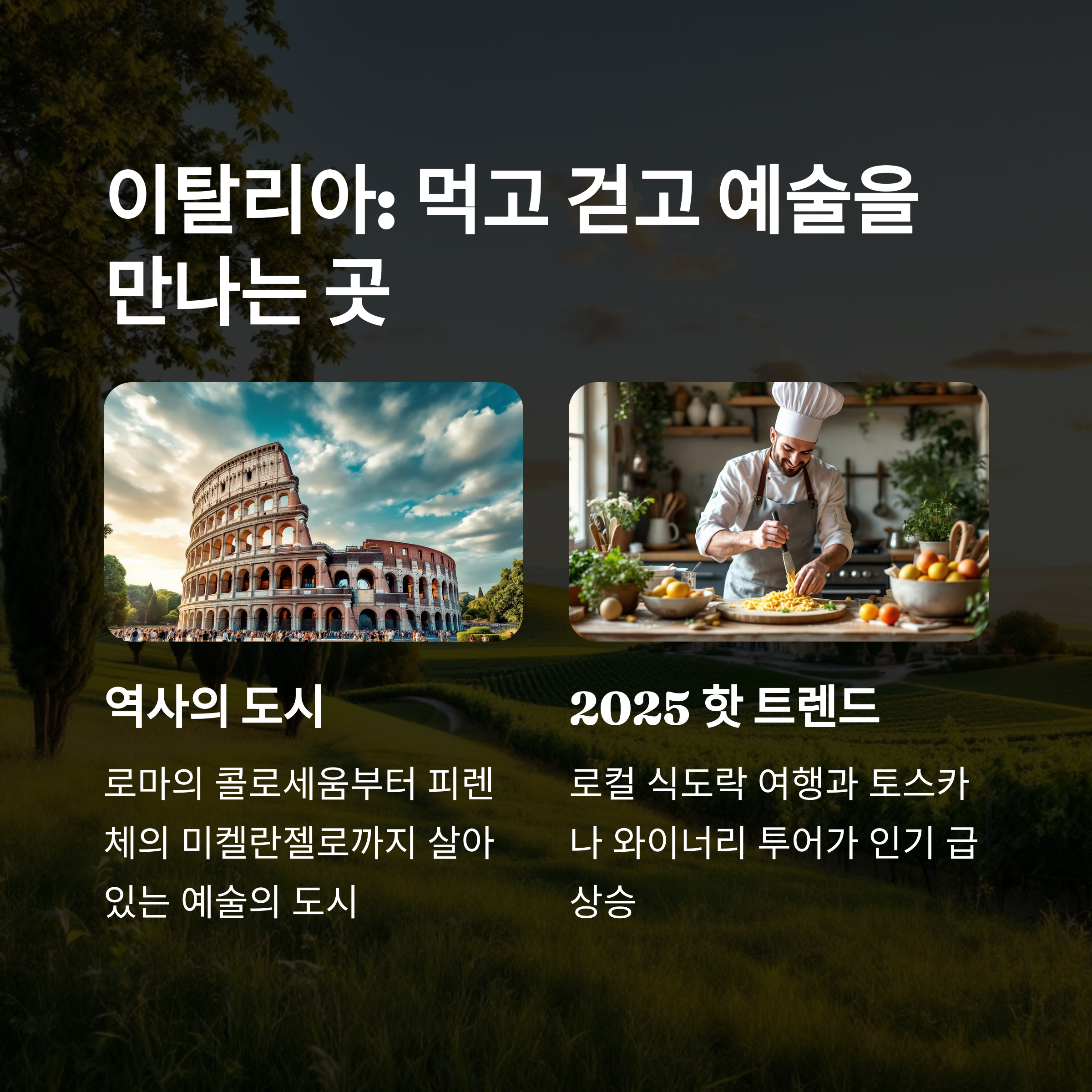4. 이탈리아: 먹고 걷고 예술을 만나는 곳