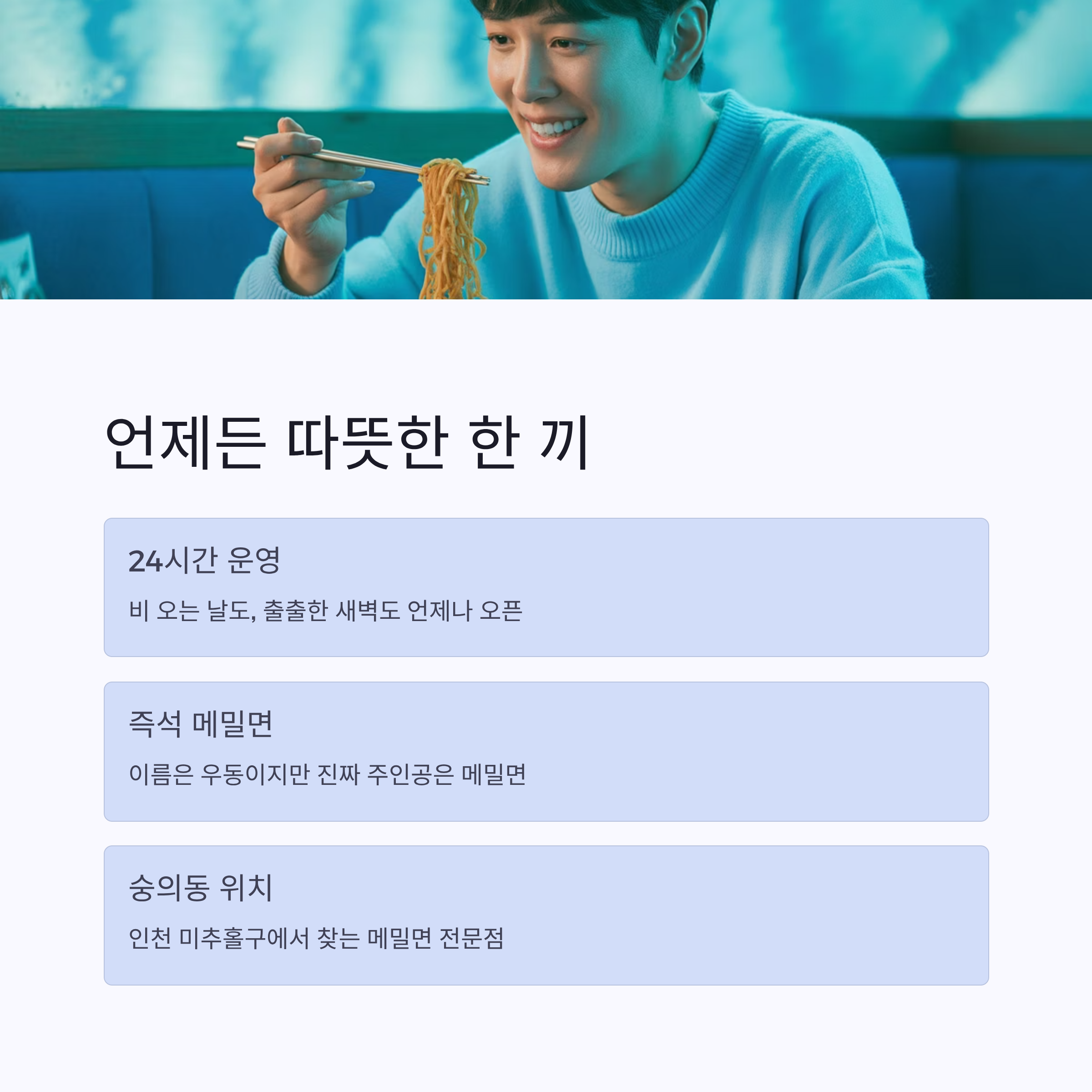 인천 미추홀구 숭의동에서 24시간 언제든 따뜻한 한 끼를 먹을 수 있는 곳을 찾고 있다면?