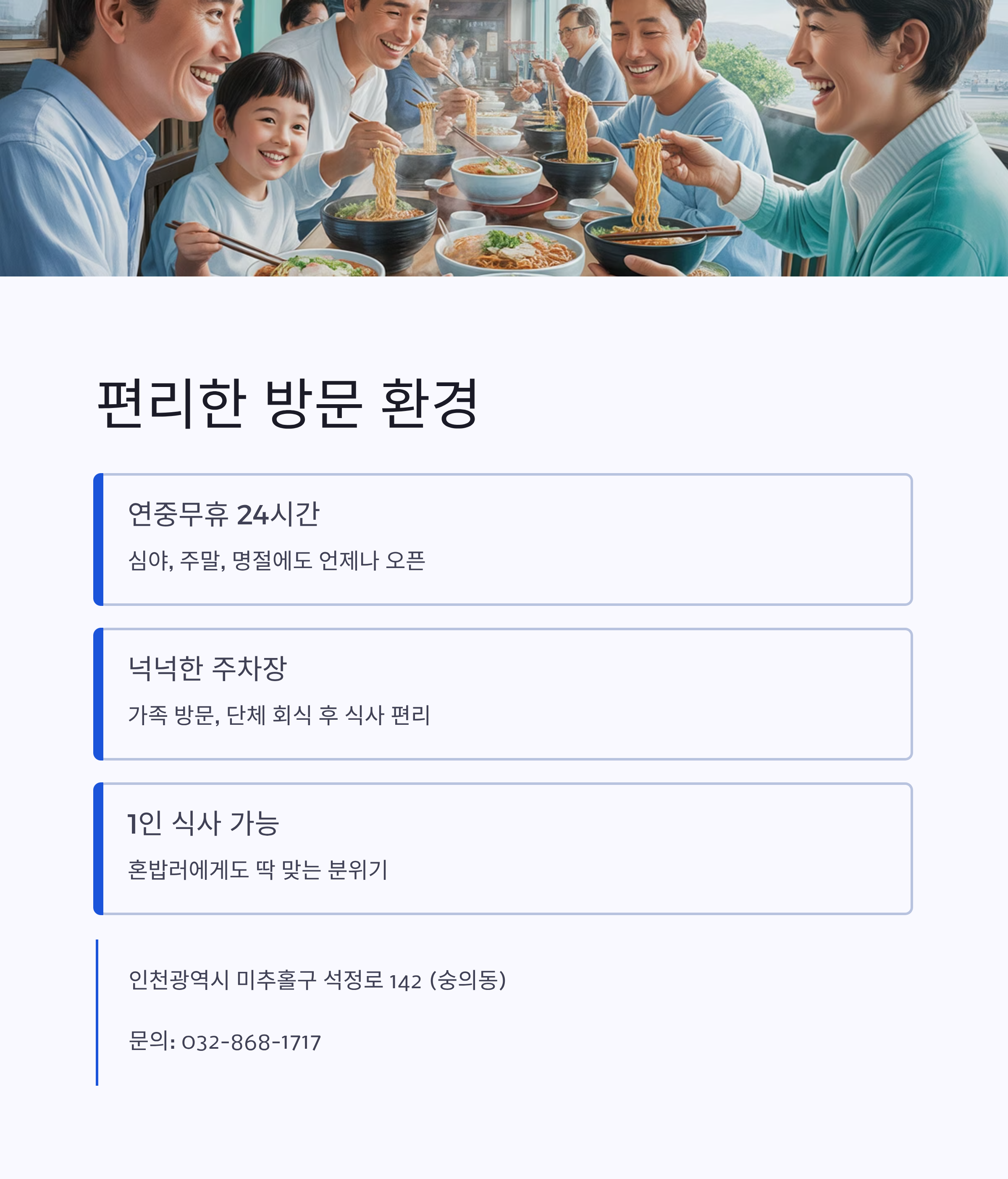 인천 미추홀구 숭의동에서 24시간 언제든 따뜻한 한 끼를 먹을 수 있는 곳을 찾고 있다면?