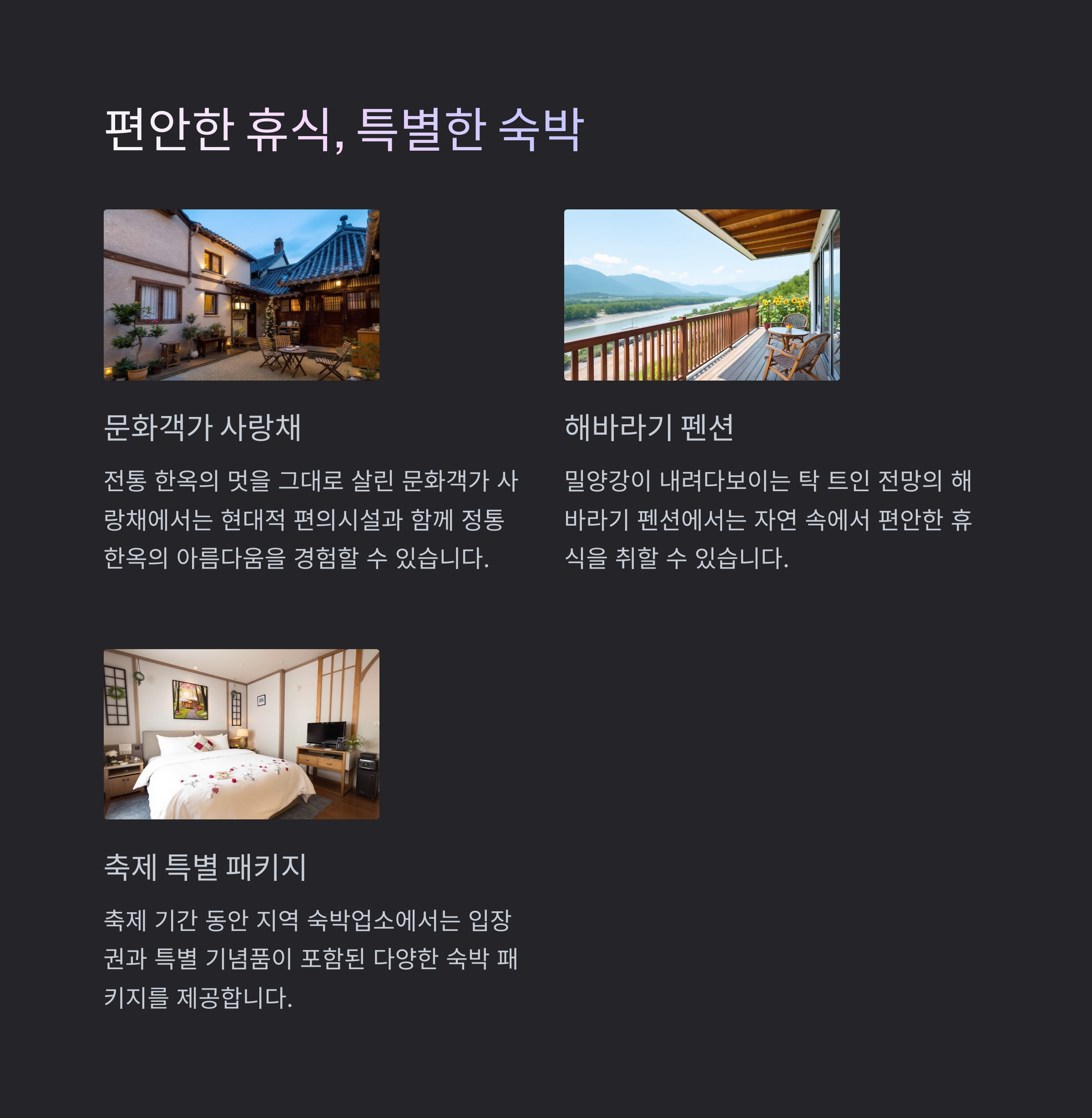 밀양강 오딧세이와 아리랑 투어는 필수적으로 즐겨야 할 프로그램입니다.