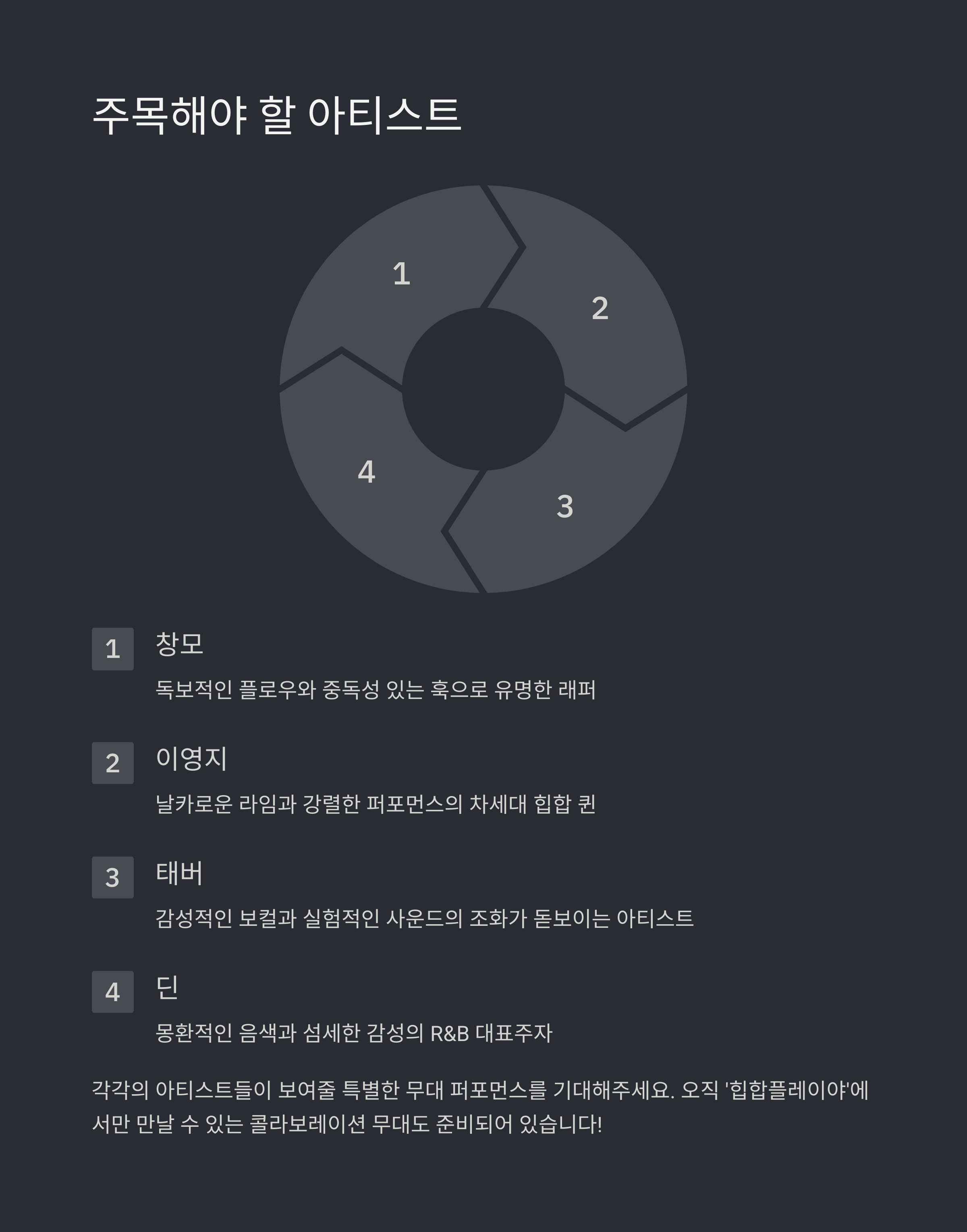 | 아티스트 | 특징 |