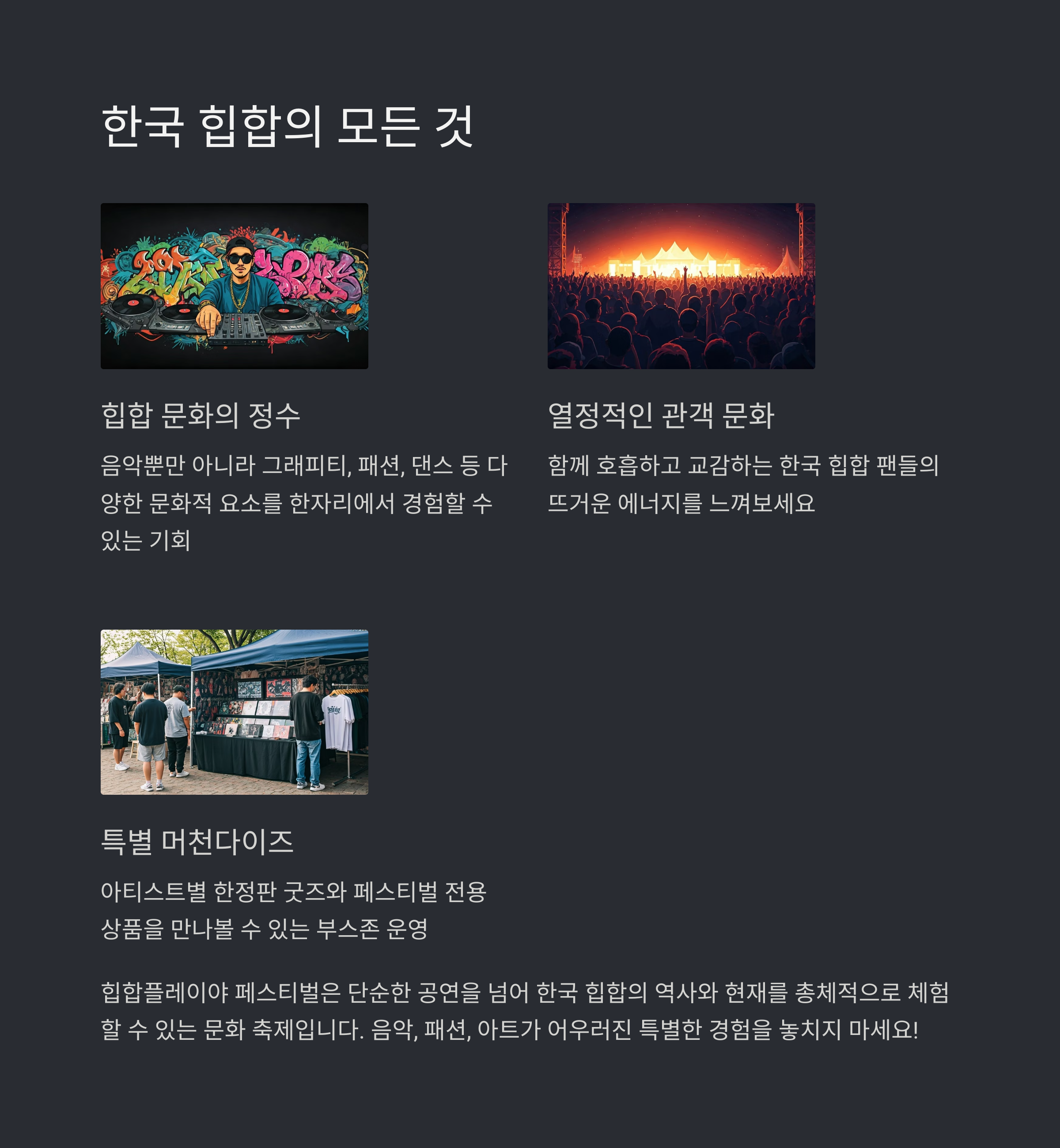 | Q. 힙합플레이야 페스티벌은 어떤 매력을 가지고 있나요? |